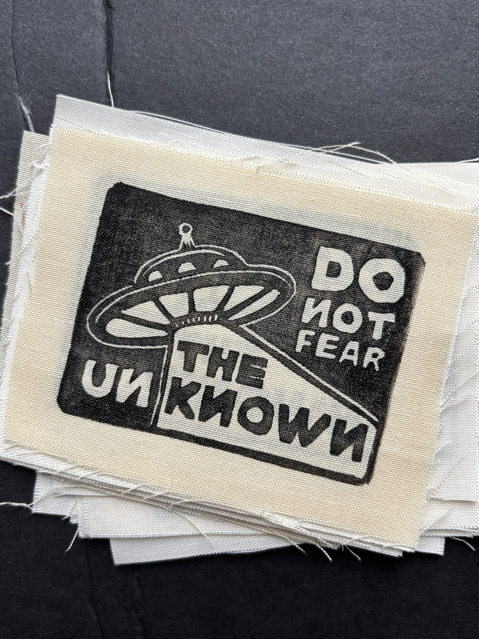 This listing is for one A/B-grade quality hand-stamped patch of my "Do Not Fear The Unknown" design. You will not get this exact patch pictured, but will get the exact design.