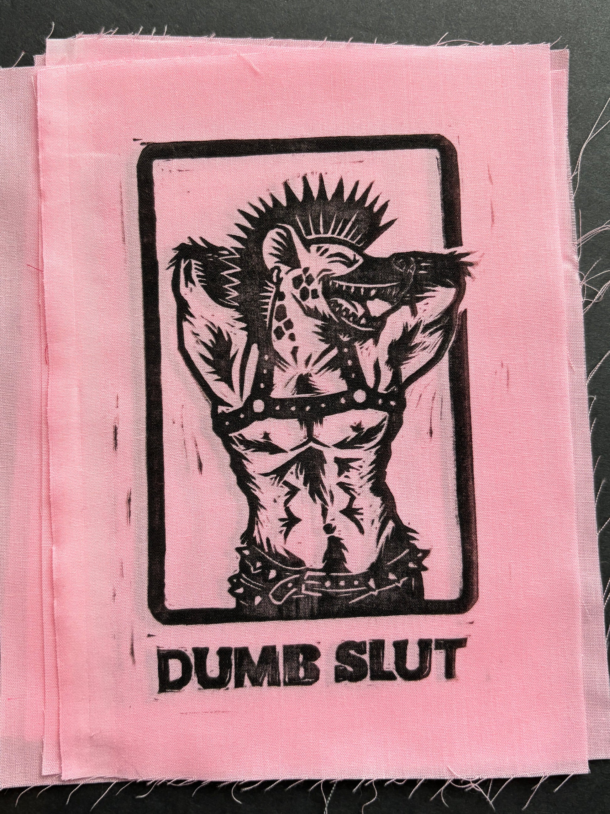 This listing is for one A/B-grade quality hand-stamped patch of my "Dumb Slut" design. You will not get this exact patch pictured, but will get the exact design. With hand-stamped patches, imperfections are an expected and unavoidable part of the process. If you need more info on the way I categorize patches by quality, please take a glance at my Hand-Stamped Quality Guide for more info!