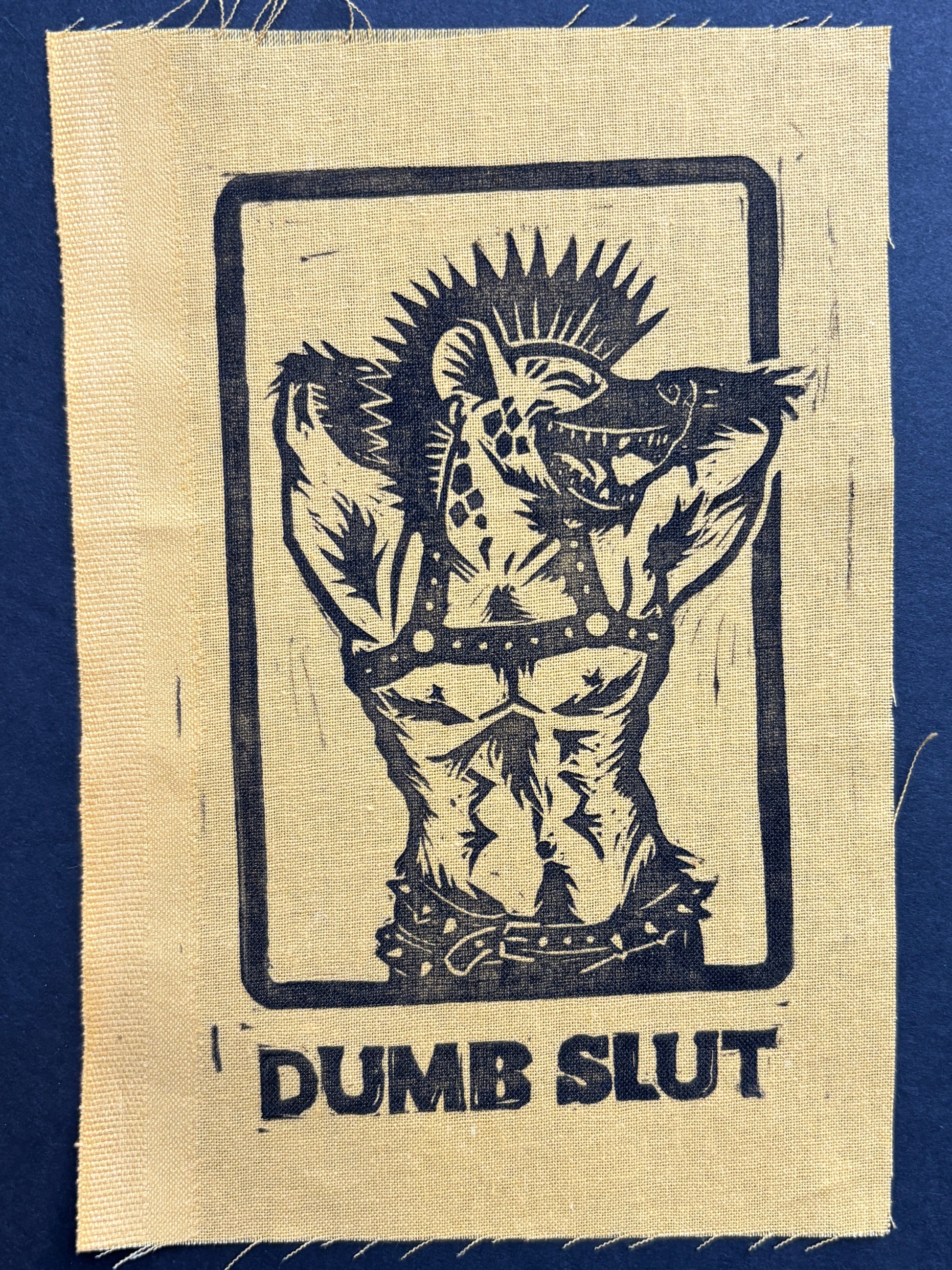 This listing is for one A/B-grade quality hand-stamped patch of my "Dumb Slut" design. You will not get this exact patch pictured, but will get the exact design. With hand-stamped patches, imperfections are an expected and unavoidable part of the process. If you need more info on the way I categorize patches by quality, please take a glance at my Hand-Stamped Quality Guide for more info!