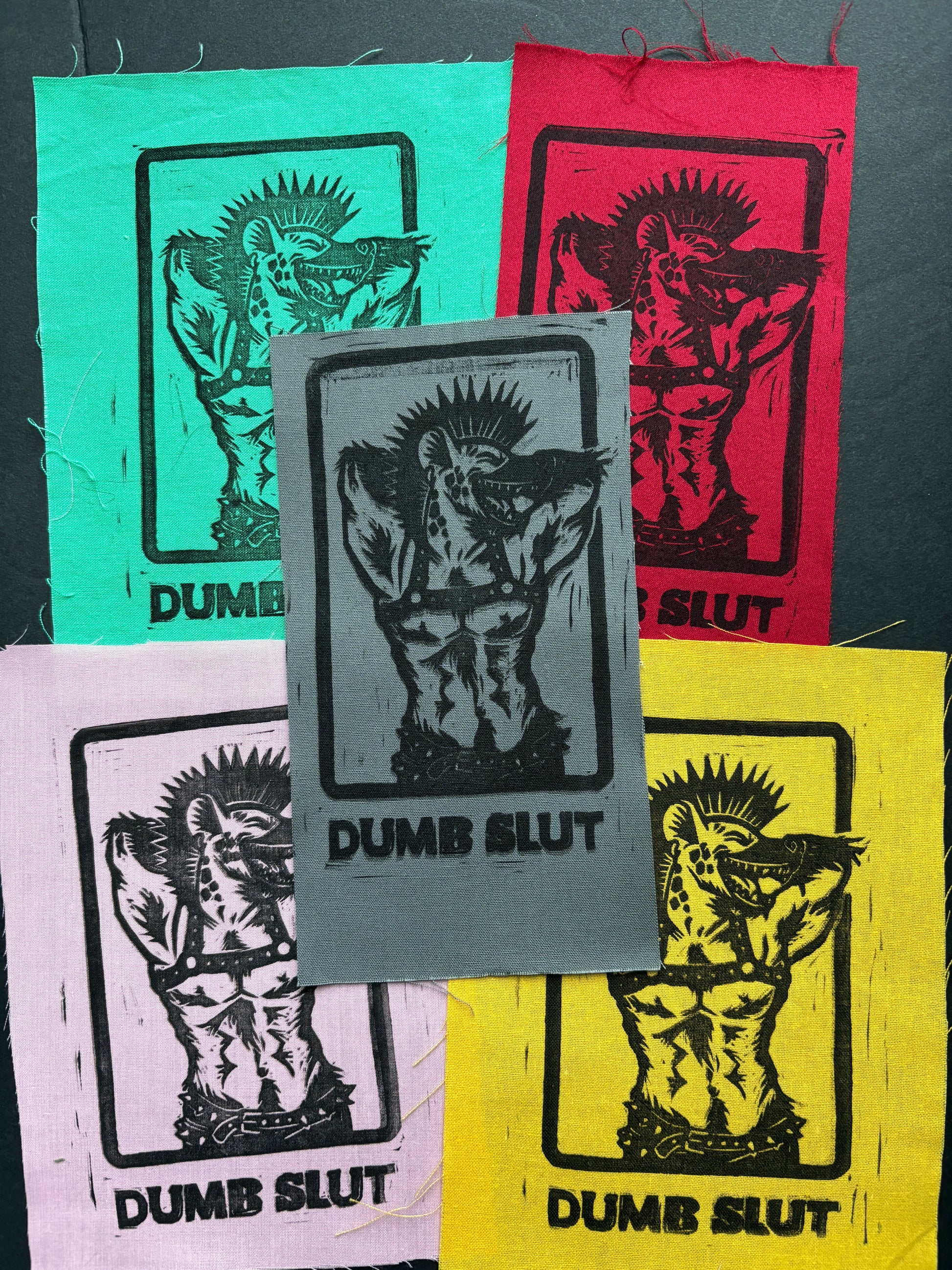 This listing is for one MISPRINT quality (B-grade or lower) hand-stamped patch of my "Dumb Slut" design. You will not get the exact patch pictured, but will get the exact design.
